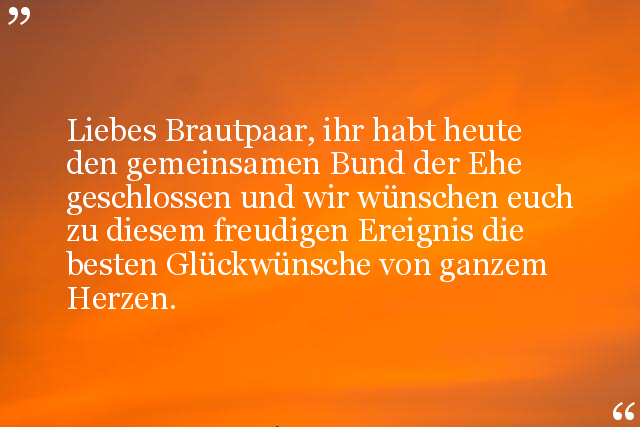 Liebes Brautpaar, ihr habt heute den gemeinsamen Bund der Ehe geschlossen und wir wünschen euch zu diesem freudigen Ereignis die besten Glückwünsche von ganzem Herzen.