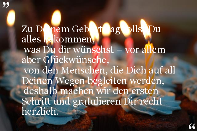 Zum Geburtstag sind es oft die kleinen Sprüche, die bei dem Jubilar gut ankommen und Freude bereiten.Hierbei ist es oft nicht von Bedeutung, ob die Glückwünsche persönlich und mündlich überbracht, per Telefon oder moderner Handy-Kommunikation übermittelt oder auch auf einer klassischen Karte geschrieben werden.