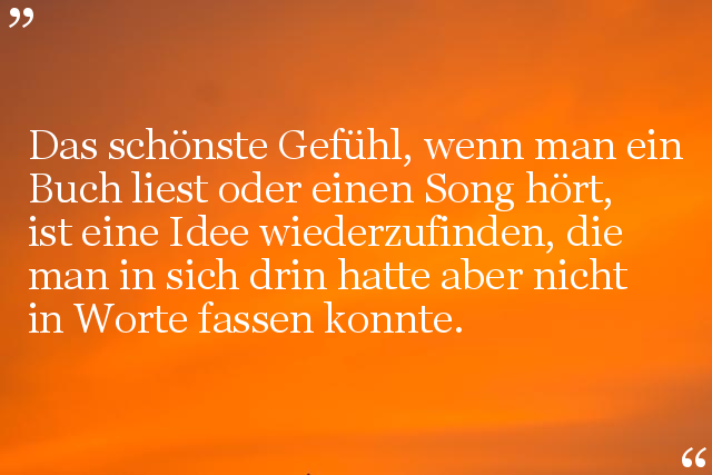 Das schönste Gefühl, wenn man ein Buch liest oder einen Song hört, ist eine Idee wiederzufinden, die man in sich drin hatte aber nicht in Worte fassen konnte.
