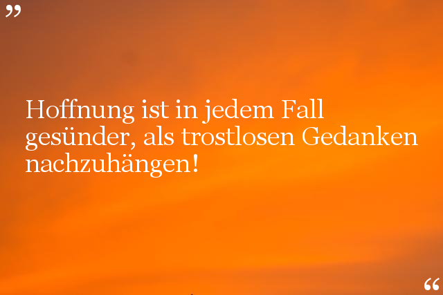 Hoffnung ist in jedem Fall gesünder, als trostlosen Gedanken nachzuhängen!