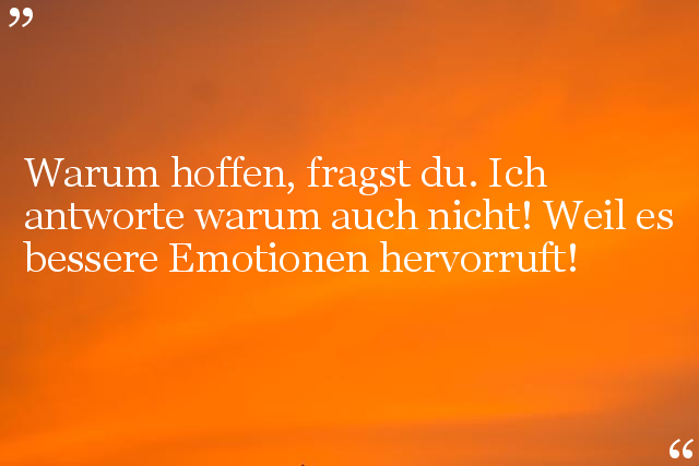 Warum hoffen, fragst du. Ich antworte warum auch nicht! Weil es bessere Emotionen hervorruft!