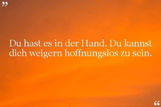 Du hast es in der Hand. Du kannst dich weigern hoffnungslos zu sein.