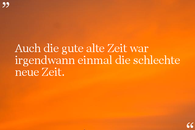 Auch die gute alte Zeit war irgendwann einmal die schlechte neue Zeit.