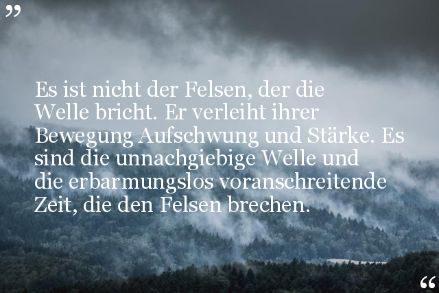 Es ist nicht der Felsen, der die Welle bricht. Er verleiht ihrer Bewegung Aufschwung und Stärke. Es sind die unnachgiebige Welle und die erbarmungslos voranschreitende Zeit, die den Felsen brechen.