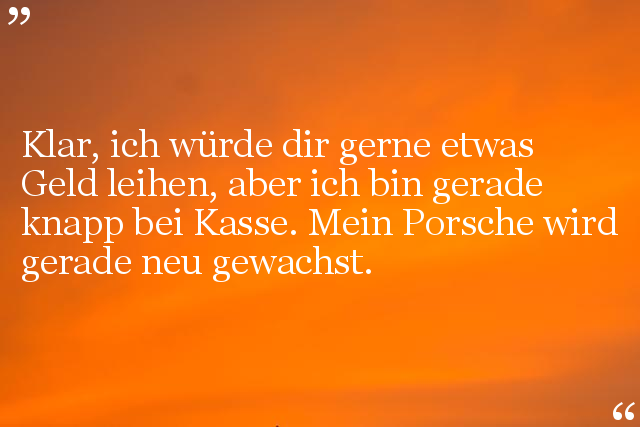 Klar, ich würde dir gerne etwas Geld leihen, aber ich bin gerade knapp bei Kasse. Mein Porsche wird gerade neu gewachst.