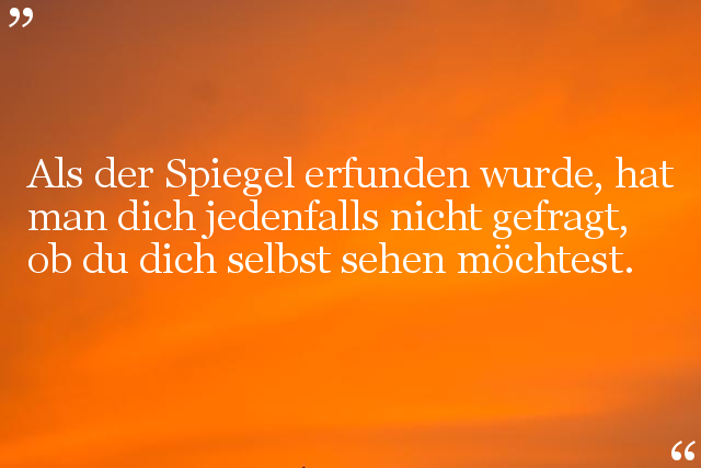 Als der Spiegel erfunden wurde, hat man dich jedenfalls nicht gefragt, ob du dich selbst sehen möchtest.