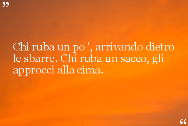 Chi ruba un po ', arrivando dietro le sbarre. Chi ruba un sacco, gli approcci alla cima.