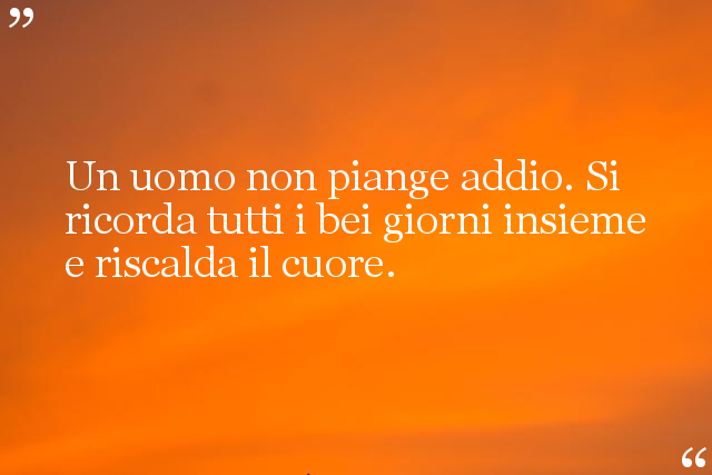 Un uomo non piange addio. Si ricorda tutti i bei giorni insieme e riscalda il cuore.