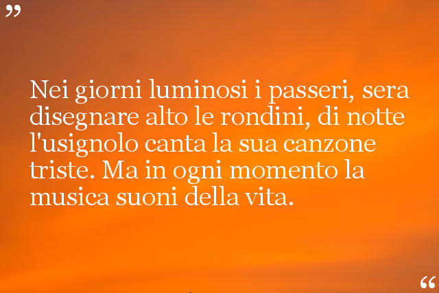 Nei giorni luminosi i passeri, sera disegnare alto le rondini, di notte l'usignolo canta la sua canzone triste. Ma in ogni momento la musica suoni della vita.