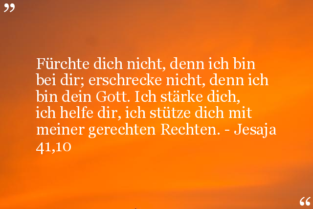 Fürchte dich nicht, denn ich bin bei dir; erschrecke nicht, denn ich bin dein Gott. Ich stärke dich, ich helfe dir, ich stütze dich mit meiner gerechten Rechten. - Jesaja 41,10