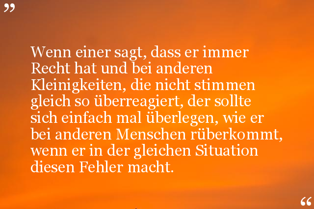 Wenn einer sagt, dass er immer Recht hat und bei anderen Kleinigkeiten, die nicht stimmen gleich so überreagiert, der sollte sich einfach mal überlegen, wie er bei anderen Menschen rüberkommt, wenn er in der gleichen Situation diesen Fehler macht.