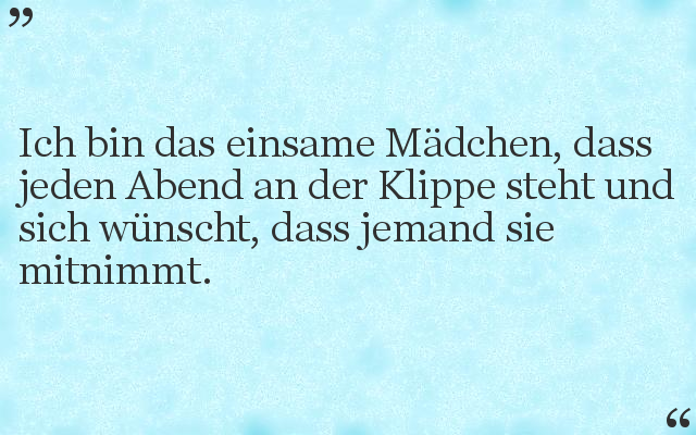Ich bin das einsame Mädchen, dass jeden Abend an der Klippe steht und sich wünscht, dass jemand sie mitnimmt.