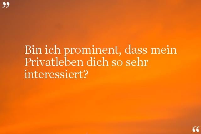Jede kennt diese unangenehmen Situationen, in denen Menschen nervige Fragen stellen, wie zum Beispiel "Wie viel Geld verdienst du eigentlich im Monat?" oder" Ich habe dich neulich mit einem attraktiven jungen Mann gesehen, wer ist das?"Bei diesen oder ähnlichen Fragen kann man sich mit kurzen und geschickten Sprüchen elegant aus der Affäre ziehen und das Nachfragen beenden. Im Folgenden sind diverse Sprüche aufgeführt, um dem Nachfragen auszuweichen und somit peinliche und persönliche Situationen zu vermeiden.