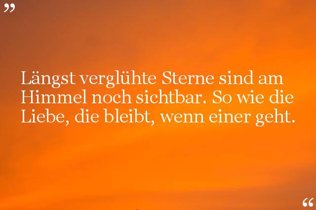 Längst verglühte Sterne sind am Himmel noch sichtbar. So wie die Liebe, die bleibt, wenn einer geht.