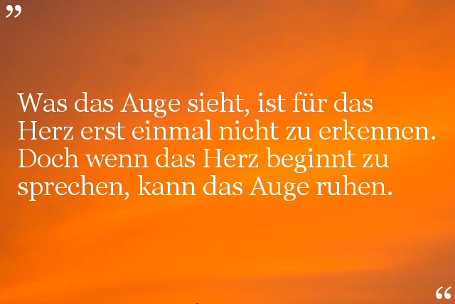 Was das Auge sieht, ist für das Herz erst einmal nicht zu erkennen. Doch wenn das Herz beginnt zu sprechen, kann das Auge ruhen.