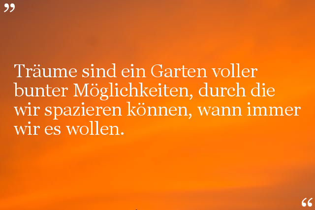 Träume sind ein Garten voller bunter Möglichkeiten, durch die wir spazieren können, wann immer wir es wollen.