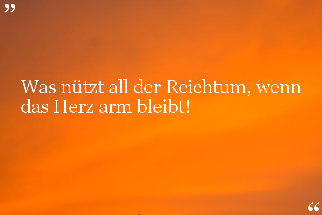 Was nützt all der Reichtum, wenn das Herz arm bleibt!