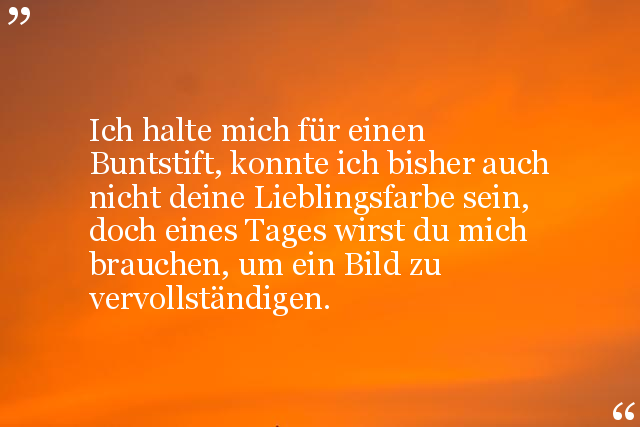 Ich halte mich für einen Buntstift, konnte ich bisher auch nicht deine Lieblingsfarbe sein, doch eines Tages wirst du mich brauchen, um ein Bild zu vervollständigen.