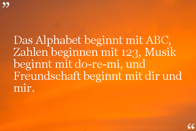 Das Alphabet beginnt mit ABC, Zahlen beginnen mit 123, Musik beginnt mit do-re-mi, und Freundschaft beginnt mit dir und mir.