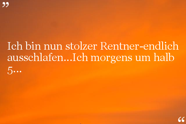 Ich bin nun stolzer Rentner-endlich ausschlafen...Ich morgens um halb 5...