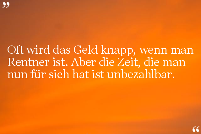 Oft wird das Geld knapp, wenn man Rentner ist. Aber die Zeit, die man nun für sich hat ist unbezahlbar.