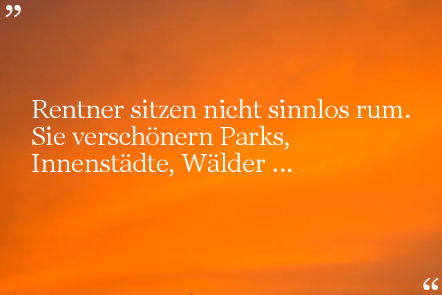 Rentner sitzen nicht sinnlos rum. Sie verschönern Parks, Innenstädte, Wälder ...