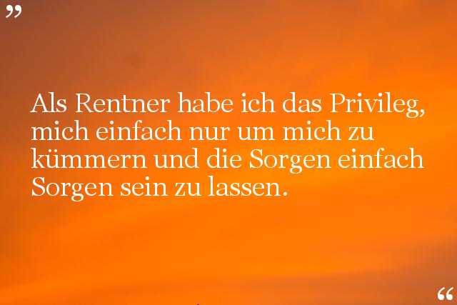 Als Rentner habe ich das Privileg, mich einfach nur um mich zu kümmern und die Sorgen einfach Sorgen sein zu lassen.
