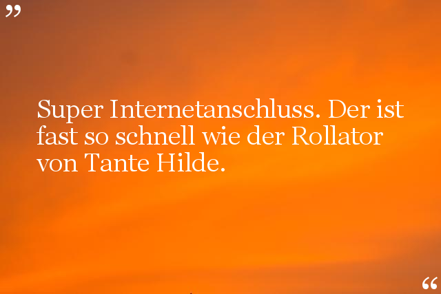 Super Internetanschluss. Der ist fast so schnell wie der Rollator von Tante Hilde.