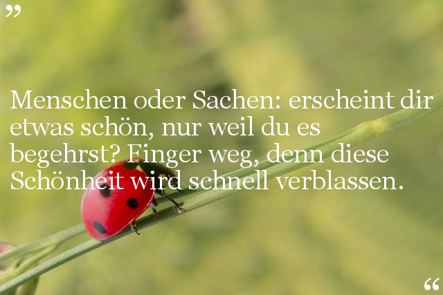 Menschen oder Sachen: erscheint dir etwas schön, nur weil du es begehrst? Finger weg, denn diese Schönheit wird schnell verblassen.