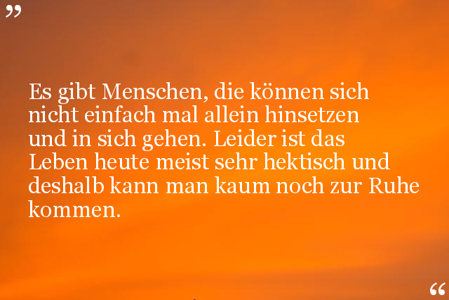 Es gibt Menschen, die können sich nicht einfach mal allein hinsetzen und in sich gehen. Leider ist das Leben heute meist sehr hektisch und deshalb kann man kaum noch zur Ruhe kommen.