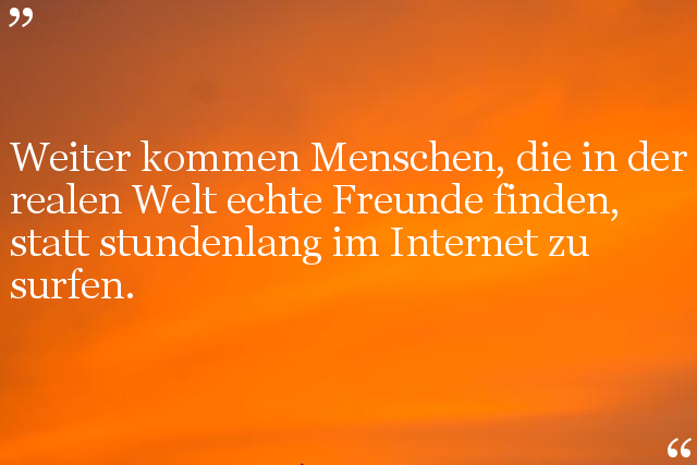 Weiter kommen Menschen, die in der realen Welt echte Freunde finden, statt stundenlang im Internet zu surfen.