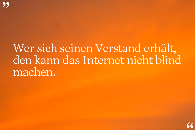 Wer sich seinen Verstand erhält, den kann das Internet nicht blind machen.