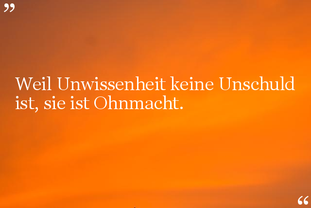 Weil Unwissenheit keine Unschuld ist, sie ist Ohnmacht.