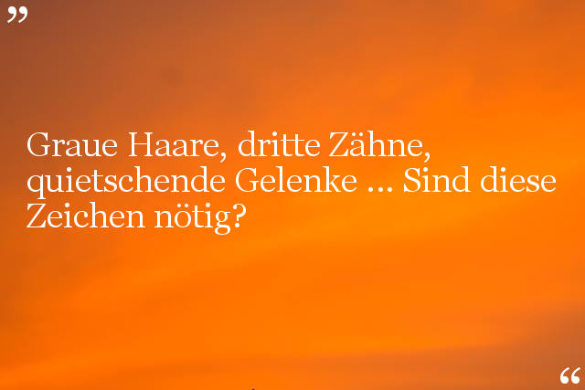 Graue Haare, dritte Zähne, quietschende Gelenke ... Sind diese Zeichen nötig?