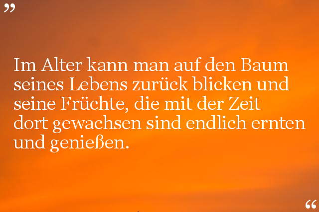 Im Alter kann man auf den Baum seines Lebens zurück blicken und seine Früchte, die mit der Zeit dort gewachsen sind endlich ernten und genießen.