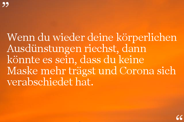 Wenn du wieder deine körperlichen Ausdünstungen riechst, dann könnte es sein, dass du keine Maske mehr trägst und Corona sich verabschiedet hat.