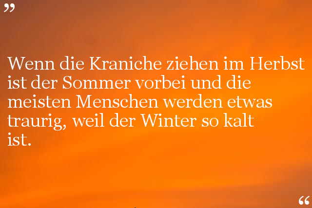 Wenn die Kraniche ziehen im Herbst ist der Sommer vorbei und die meisten Menschen werden etwas traurig, weil der Winter so kalt ist.