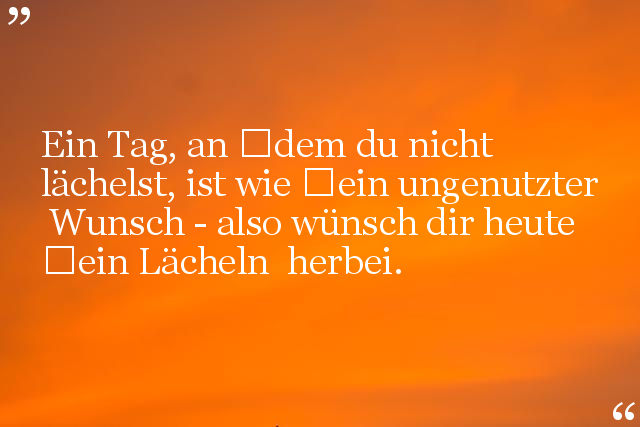 Ein Tag, an dem du nicht lächelst, ist wie ein ungenutzter Wunsch - also wünsch dir heute ein Lächeln herbei.