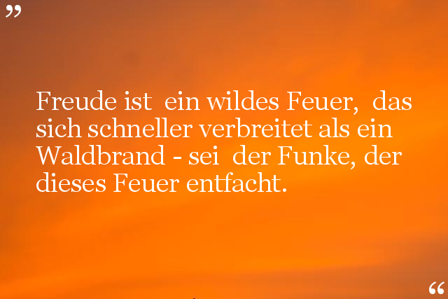 Freude ist ein wildes Feuer, das sich schneller verbreitet als ein Waldbrand - sei der Funke, der dieses Feuer entfacht.