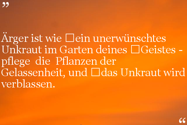 Ärger ist wie ein unerwünschtes Unkraut im Garten deines Geistes - pflege die Pflanzen der Gelassenheit, und das Unkraut wird verblassen.