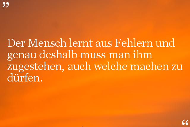 Der Mensch lernt aus Fehlern und genau deshalb muss man ihm zugestehen, auch welche machen zu dürfen.