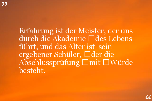 Erfahrung ist der Meister, der uns durch die Akademie des Lebens führt, und das Alter ist sein ergebener Schüler, der die Abschlussprüfung mit Würde besteht.