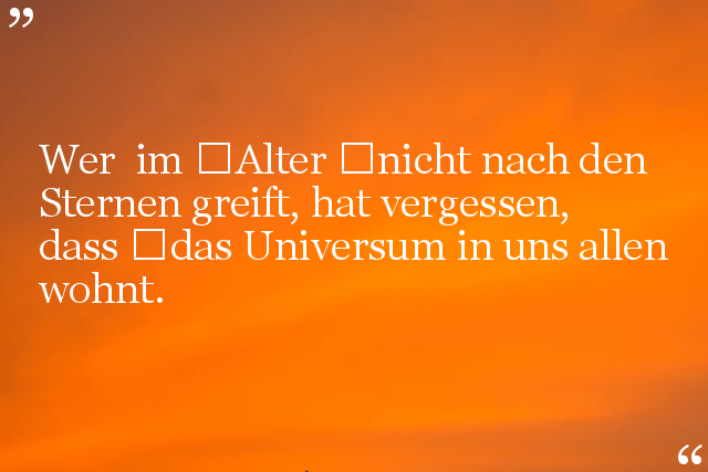 Wer im Alter nicht nach den Sternen greift, hat vergessen, dass das Universum in uns allen wohnt.