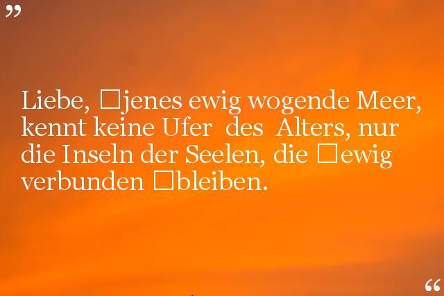 Liebe, jenes ewig wogende Meer, kennt keine Ufer des Alters, nur die Inseln der Seelen, die ewig verbunden bleiben.