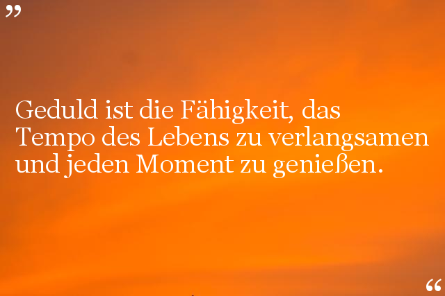 Geduld ist die Fähigkeit, das Tempo des Lebens zu verlangsamen und jeden Moment zu genießen.