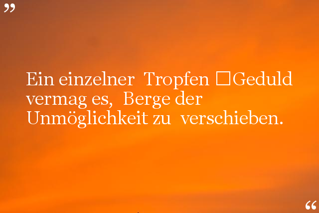 Geduld ist eine Tugend, die in vielen Lebensbereichen von Bedeutung ist und uns hilft uns schwierige Situationen zu meistern, Rückschläge zu überwinden und langfristige Ziele zu verfolgen.Hier daher einmal Sprüche rund um das Thema Geduld um die Bedeutung und den Wert von Geduld zu verdeutlichen, denn wenn man sich bewusst macht wie wichtig Geduld ist kann man anderen ein gutes Beispiel sein und sie ermutigen, ebenfalls Geduld zu üben.