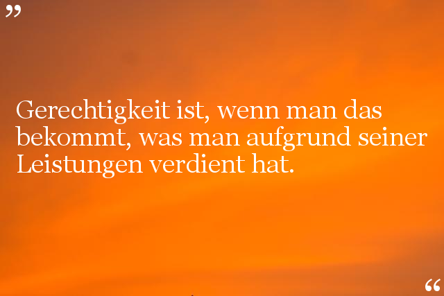 Gerechtigkeit ist, wenn man das bekommt, was man aufgrund seiner Leistungen verdient hat.
