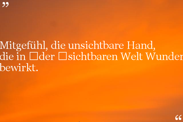 Mitgefühl, die unsichtbare Hand, die in der sichtbaren Welt Wunder bewirkt.