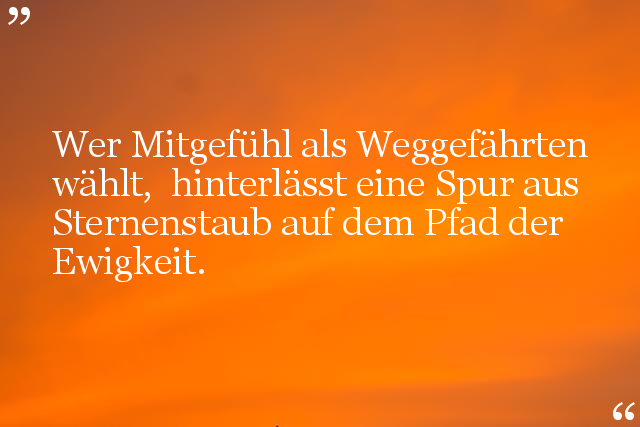 Wer Mitgefühl als Weggefährten wählt, hinterlässt eine Spur aus Sternenstaub auf dem Pfad der Ewigkeit.