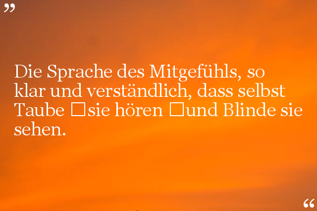 Die Sprache des Mitgefühls, so klar und verständlich, dass selbst Taube sie hören und Blinde sie sehen.